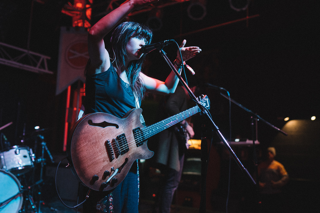 Y La Bamba are playing selections from their recent (and, might I add, stellar) album Mujeres to a crowd mostly seeing them for the first time. Or maybe the second, since the band played the main stage earlier this afternoon. Their songs ranged from reverb-drenched psych-rock to Spanish-language electric folk guided by finger snaps from the four members sitting out from their instruments and peppered throughout the crowd.