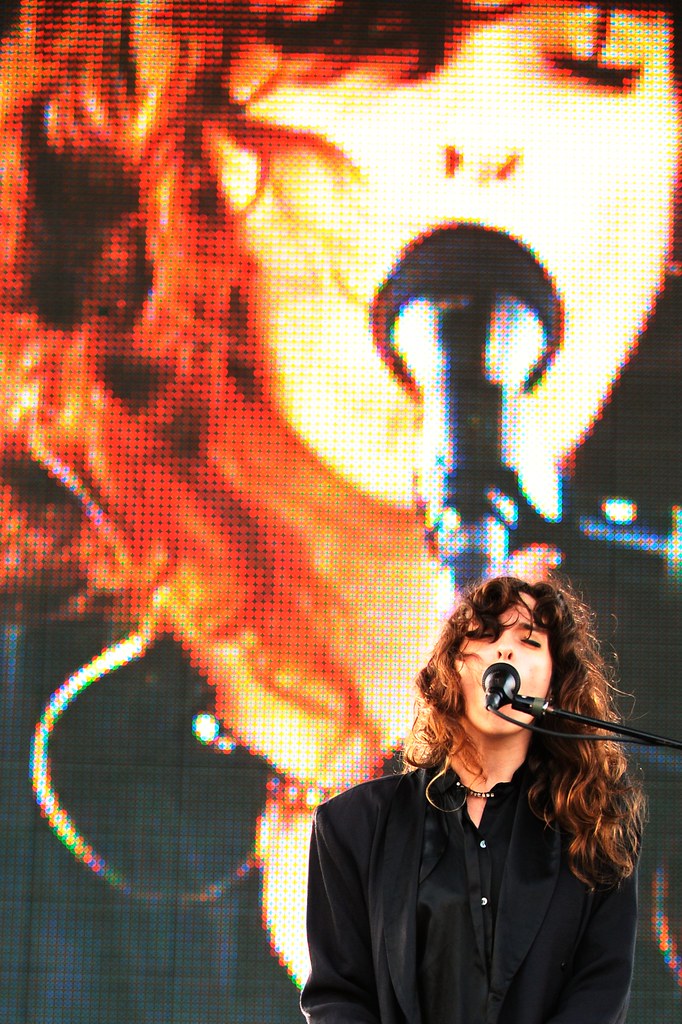 I always feel excited. For me, excitement is also an electric nervousness. It’s, like, a fear but it’s also— you’re excited because you don’t know the end. Every single show is completely different. There’s a totally different interaction with the crowd and with people in the front row. You just see so many different faces. So, I always have a mixed— it’s very alive. It’s very palpably unknown. I’ve never had stage fright. It’s not that. It’s just this electric nervousness. Like if you walked into a party and you didn’t know anybody there except maybe for one or two other people you’re with, which are the two people I’m with on stage, Alex and James. And the rest is fun and I think that’s what has kept us on our toes and also alive, energetically: never assuming that any night is going to be like any other. And a gratitude! By the end of every show I always feel an incredible realization that this moment can never be recreated and that it’s amazing that people show up and buy tickets and come and take time out of their lives to interact with you in such a wild way. It’s a room full of people that you may never meet, but they’re together and I think that’s what makes concerts so sacred. It’s such an amazing format and I hope that it never is threatened by technology. I think that people should always go out, physically go out, and see art that they love and not just rely on technology and iPads and personal home systems to recreate something that I think can never be replaced, which is that feeling of being outside and being with people in a public space all sharing something intimate, but publically.