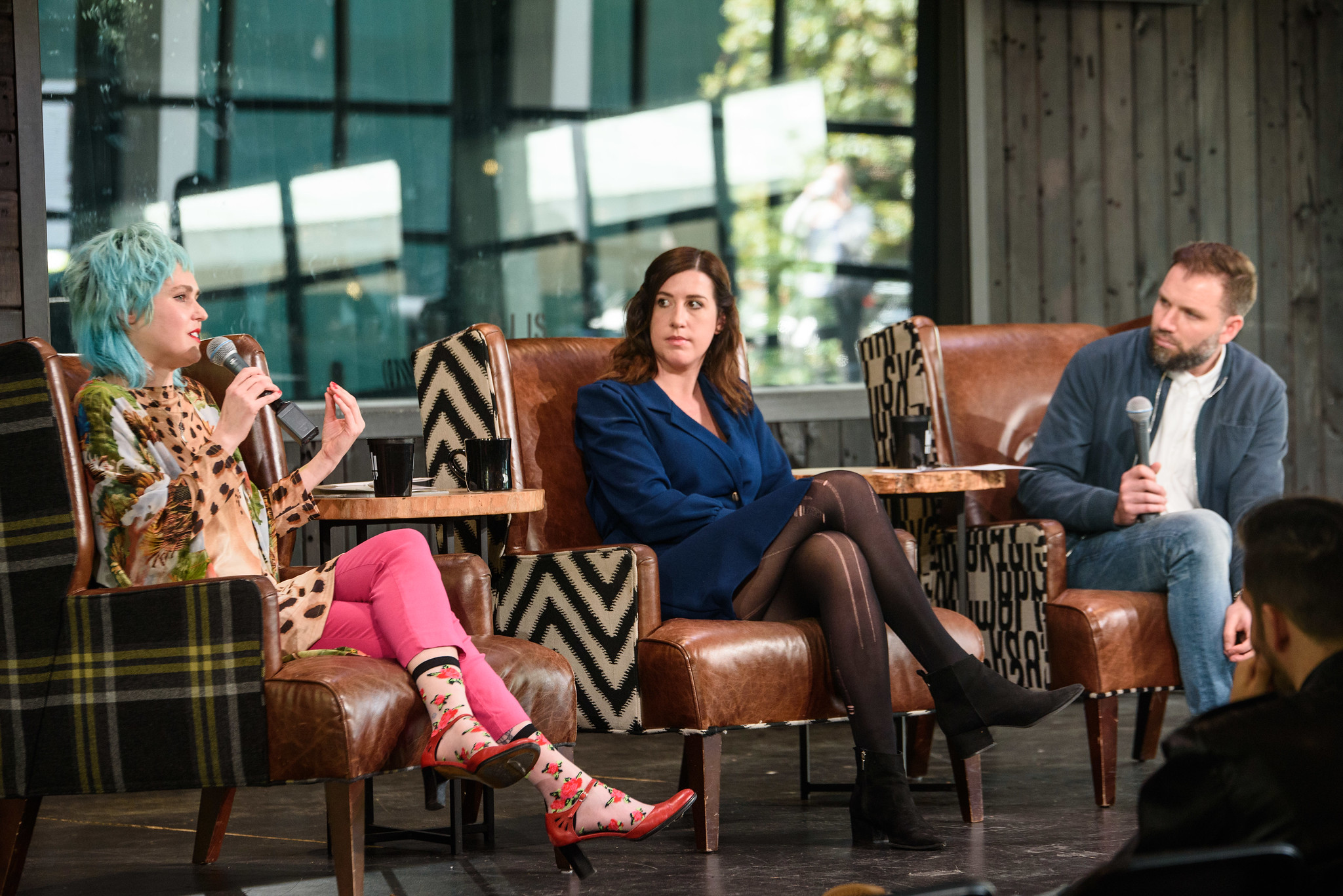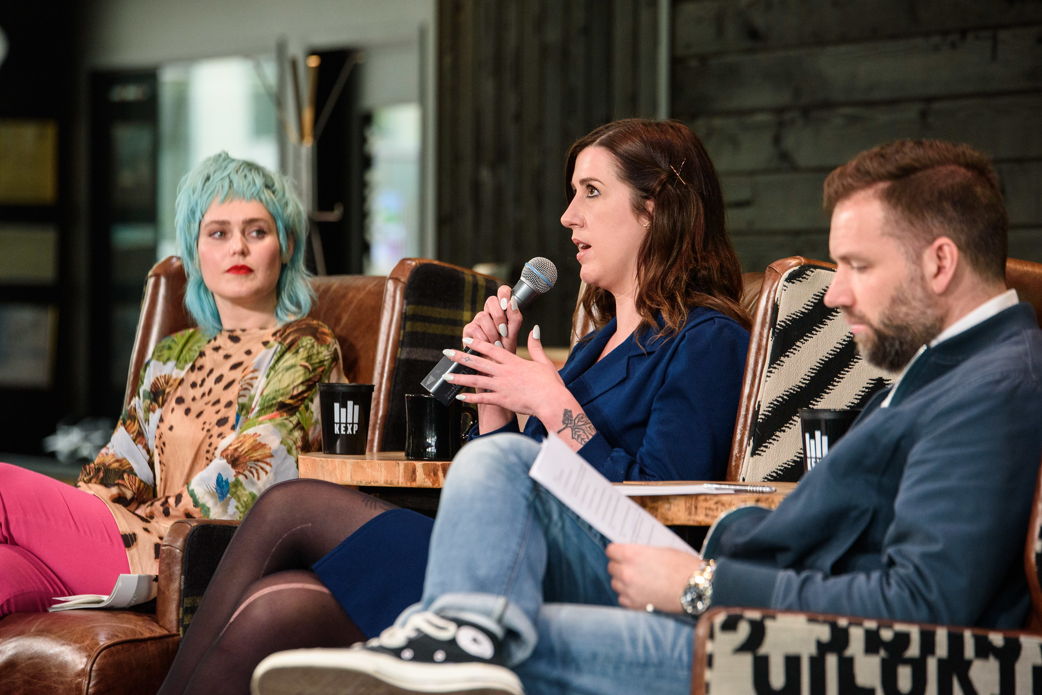 Albertson notes "boss bitch" is a term DMM uses in their branding, which obviously may not be the most professional distinction, but it fits into their ethos of empowerment. DMM's Sasha Gonzales runs the company's Instagram, and Albertson acknowledges the great job she does in encapsulating their vibe: fun, youthful, femme. Secord goes off-script to ask how the other panelists present themselves differently in their private lives from how their public persona is cultivated. Over time, Albertson has made her personal pages reflect her professional work to reduce the stress of handling her personal life in a public forum. Nokes adds to that by noting her personal social media accounts are reflective of her other work and sometimes simply how she's feeling on a particular day about a particular subject. Secord notes that he's asked because of the inherent tension between being authentic to yourself as a person and not alienating anyone as a brand. He asks the panel how they navigate that balance.