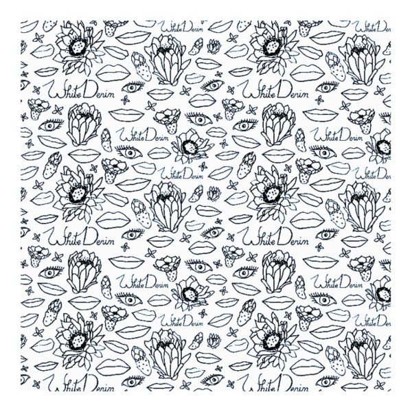 One thing that we will surely need, even once the stay-at-home order lifts, is facial protection, like a mask or even a stylish bandana tied around your nose and mouth. This illustrated one from Austin, TX psych-rock band White Denim definitely does the trick! (Note: their webshop doesn't confirm, but it's my assumption that these are white cotton, not... denim.) (Also, the CDC shows you how to fold one to wear here.) Each square of fabric is boldly illustrated with a fantastic floral design dotted with lips, eyeballs, and the band's name in cursive script. I'm not sure who the artist is, but I wonder if it's Will Gaynor who designed the covers for last year's LP In Person, as well as the albums Performance and Side Effects.