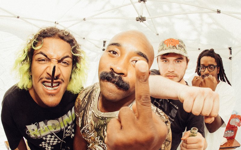 It’s an extension of the full experience of Enumclaw’s live show, which is markedly different from their recorded works by design. “You want to give people a show,” Aramis says. “It’s cool when someone plays their instrument with precision, but it’s fun to see somebody jump in the crowd. It’s fun to see shit go haywire. It just makes it more exciting; you want to be remembered. You look at the Green Days of the world or, like, we saw Yves Tumor at THING Festival and they put on a fucking show. And that’s what we’re trying to do.”