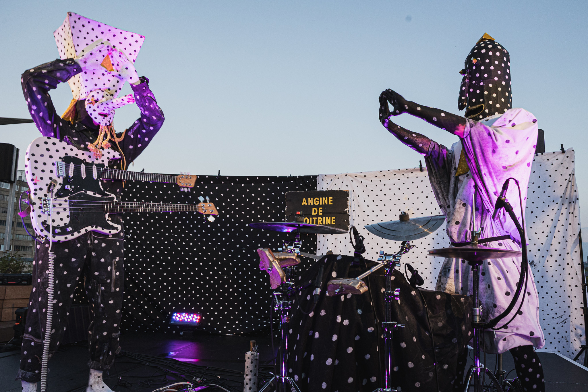 Angine de Poitrine took the rooftop stage in elaborate black-and-white polka dot papier-mâché costumes to rip through a dada-esque set of angular, groove-laden experimental rock. Their spellbinding guitar work, emphatic, distorted vocals, and intoxicating rhythms had the crowd engaged from the first note to the last.