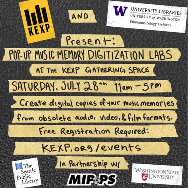 Join us on Saturday, July 28th from 11 AM -5 PM in the KEXP Gathering Space, for our Pop-Up Music Memory Digitization Labs.